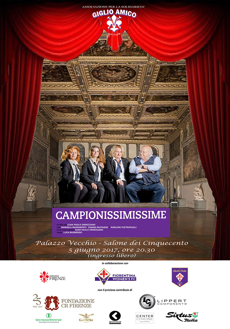 Lunedì 5 giugno 2017 l’Associazione Giglio Amico onlus, in collaborazione con il Comune di Firenze, la Fiorentina Women’s FC e Glorie Viola, ha presentato nel Salone dei Cinquecento in Palazzo Vecchio – inizio ore 20,30 - la serata “Campionissimissime… anche a Firenze”.